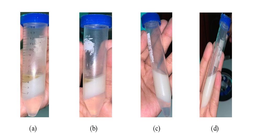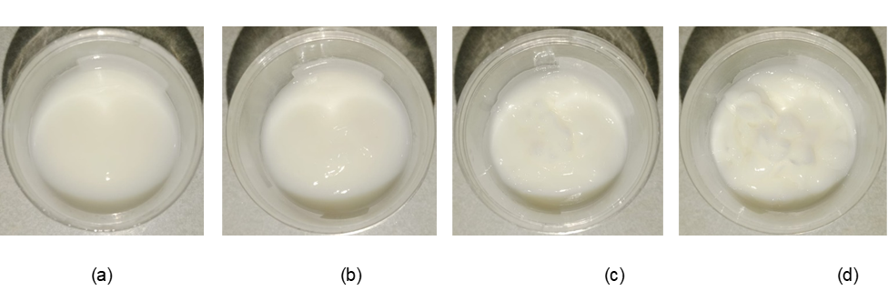 Gambar 2. Sediaan krim aromaterapi (a) F1 (3%) ; (b) F2 (4%) ; (c) F3 (5%); (d) F4 (6%)