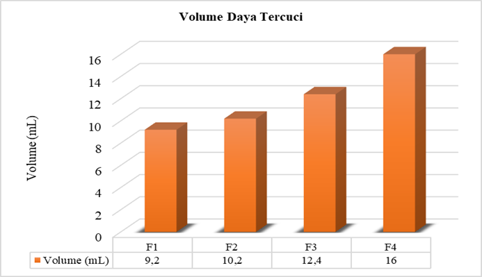 Pengujian sentrifugasi bertujuan untuk mengetahui stabilitas krim aromaterapi yang dipengaruhi efek sentrifugal selama 5 jam dengan kecepatan 3750 rpm (12). Krim yang tidak stabil ditandai dengan terjadinya pemisahan fase. Hasil uji setrifugasi dapat dilihat pada Gambar 6. dan volume air hasil pemisahan fase dapat dilihat pada Tabel 3.