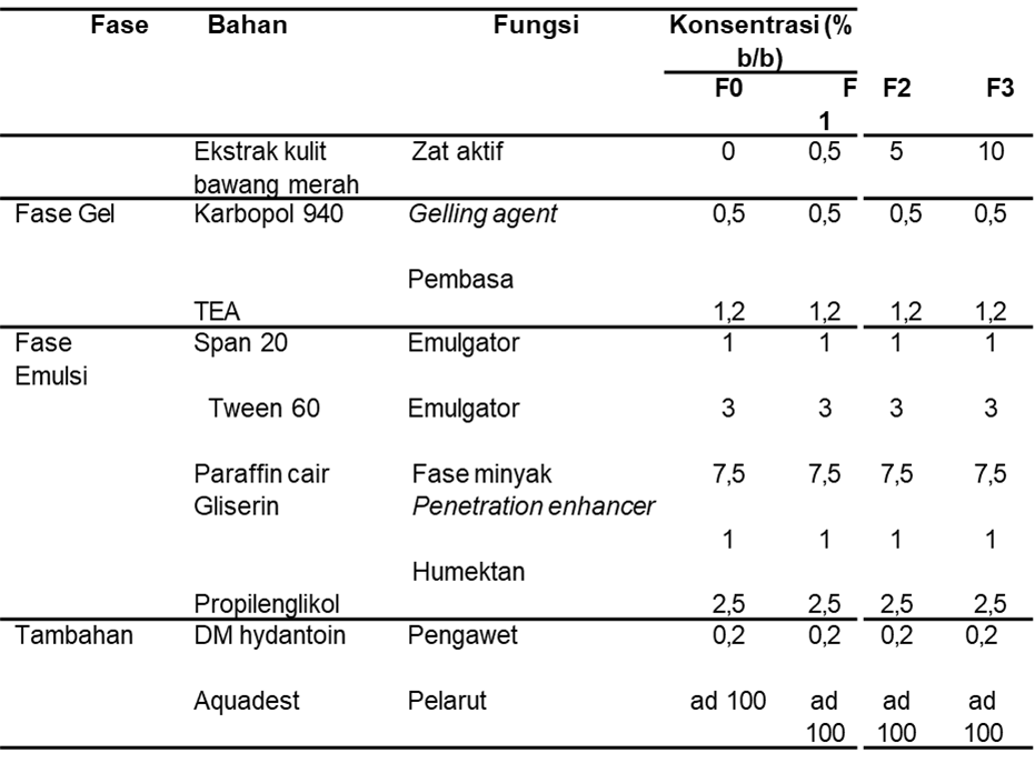 Tabel 1. Formulasi Emulgel Ekstrak Kulit Bawang Merah